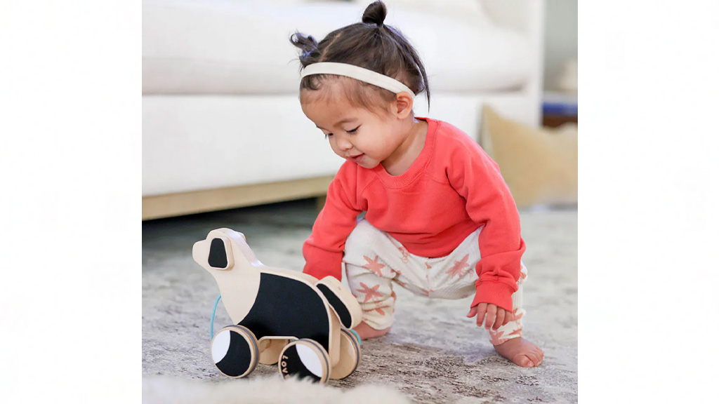Toto šteniatko je pripravené stať sa novým najlepším priateľom vášho dieťaťa. Vyrobené z udržateľného dreva, tento verný spoločník je pripravený sprevádzať malých na ich prechádzkových dobrodružstvách. S vrtivým chvostom a špicatými ušami je tento dokonalý spoločník ideálny na rozvoj motorických zručností. Okrem toho pomáha deťom zlepšovať koordináciu a rovnováhu, pričom poskytuje zábavný a bezpečný herný zážitok.