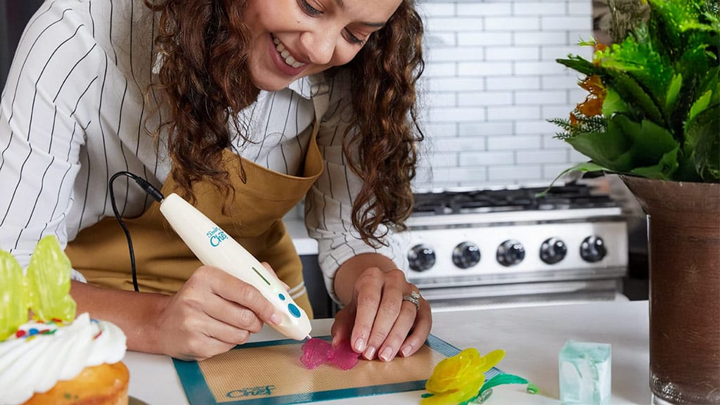 3Doodler Chef je revolučné 3D tlačiarenské pero, ktoré umožňuje začínajúcim cukrárom a domácim pekárom kresliť úžasné, jedlé dekorácie jediným stlačením tlačidla. Stačí vložiť farebnú cukríkovú kapsulu, zohriať ju a môžete začať tvoriť! Predchádzajúce skúsenosti vôbec nie sú potrebné a po použití vás takmer žiadne čistenie nečaká. Toto zariadenie posúva kreativitu v kuchyni na novú úroveň a robí zdobenie zábavným pre všetky vekové kategórie.