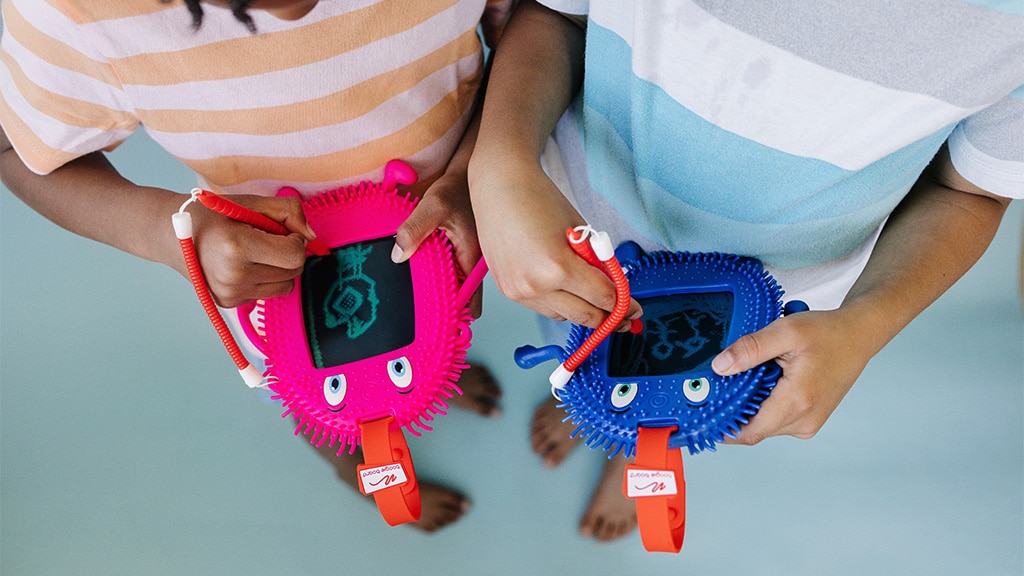 Tieto zábavné kresliace dosky Boogie Board, známe ako Squiggle (ružová) a Spike (modrá), sú skvelými senzorickými spoločníkmi, ktoré pomáhajú sústrediť a uvoľniť úzkostné mysle a nepokojné ruky. S textúrovanou obrazovkou a silikónovým puzdrom môžu deti kresliť a písať čokoľvek na obrazovku a potom to jedným stlačením tlačidla vymazať. Silikónový klip sa ľahko pripevní na batohy, obedové tašky a mnoho ďalších, takže malý priateľ môže byť vždy po ruke!