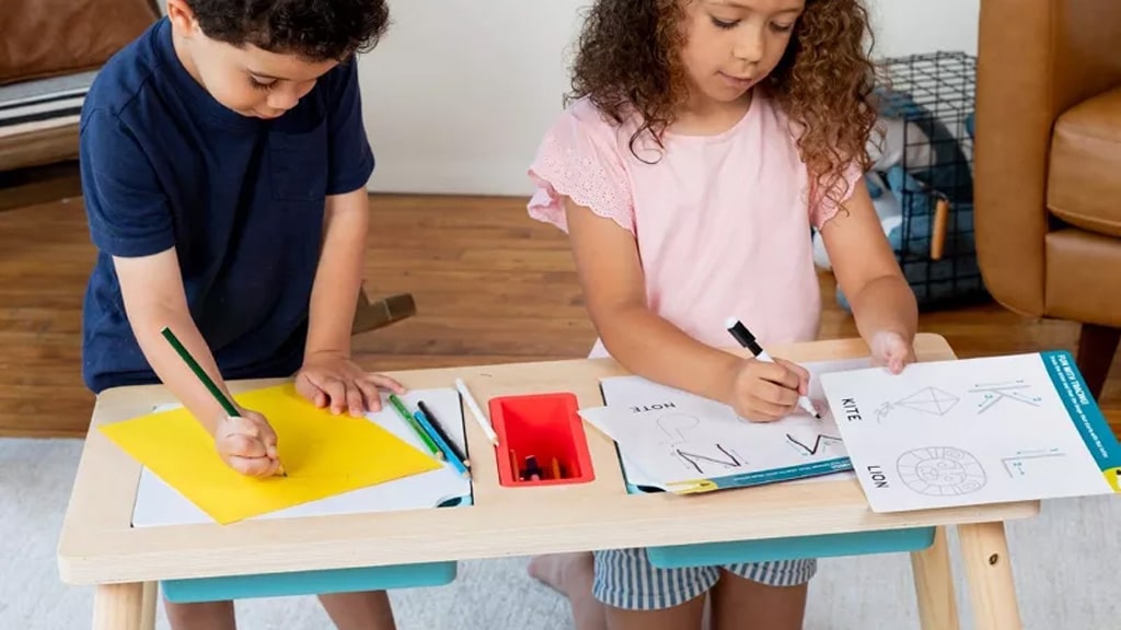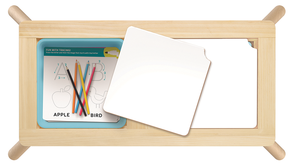 Ľahko zostaviteľný stôl nevyžaduje na montáž žiadne náradie. Aktivity podporujú učenie, kreativitu a rozvoj jemnej motoriky. Na konci hry môžu deti ľahko upratať hračky pomocou úložných boxov a viek. Je ideálny pre deti predškolského a mladšieho školského veku, pretože im pomáha rozvíjať zručnosť a schopnosti riešiť problémy.
