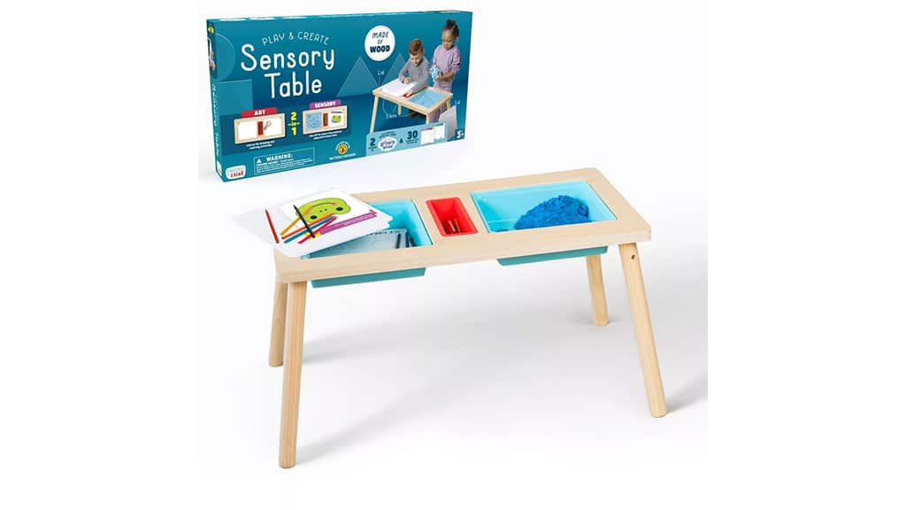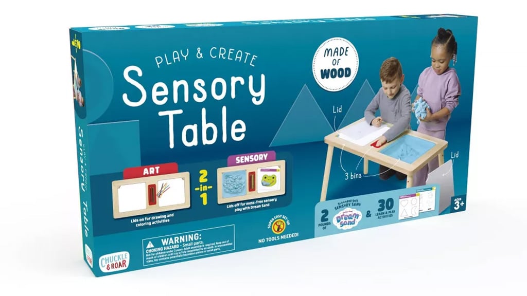 Stôl Buffalo Games Play & Create Sensor je dvojfunkčný drevený stôl prispôsobený veľkosti detí, ktorý má tri úložné priestory na hranie a skladovanie. Stôl obsahuje Dream Sand, ktorý je upokojujúci, mäkký, kinetický piesok, tri suché stierateľné fixky a 30 vzdelávacích aktivít pre zábavu bez neporiadku. Stôl Play & Create Sensor je určený pre deti od 3 rokov.