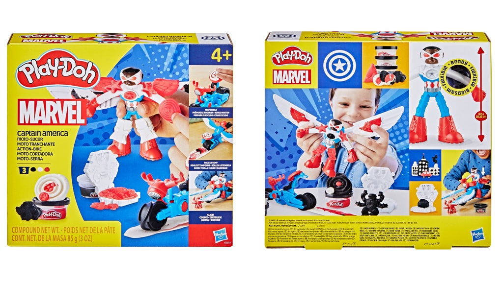 Pre rodiny fanúšikov Marvelu pripravila spoločnosť Hasbro novú, vlasteneckú sadu Play-Doh! Sada Marvel Captain America Moto-Slicer obsahuje Sama Wilsona ako ohybnú figúrku Captain America. Deti môžu figúrku pripevniť k motorke (jeho ruky sa dokonca pripoja k riadidlám) a potom prechádzať motorkou cez farebný Play-Doh, aby vytvorili a krájali hviezdy! Malí superhrdinovia môžu tiež použiť formy na vytváranie zloduchov alebo pripevniť 2 v 1 krídla na Captain America alebo vozidlo, aby krájali Play-Doh zločincov. Táto sada nie je len zábavná, ale rozvíja aj kreativitu a zručnosť detí, zatiaľ čo sa ponoria do vzrušujúceho sveta Marvel univerza.