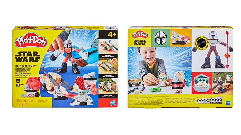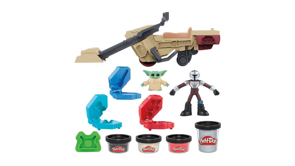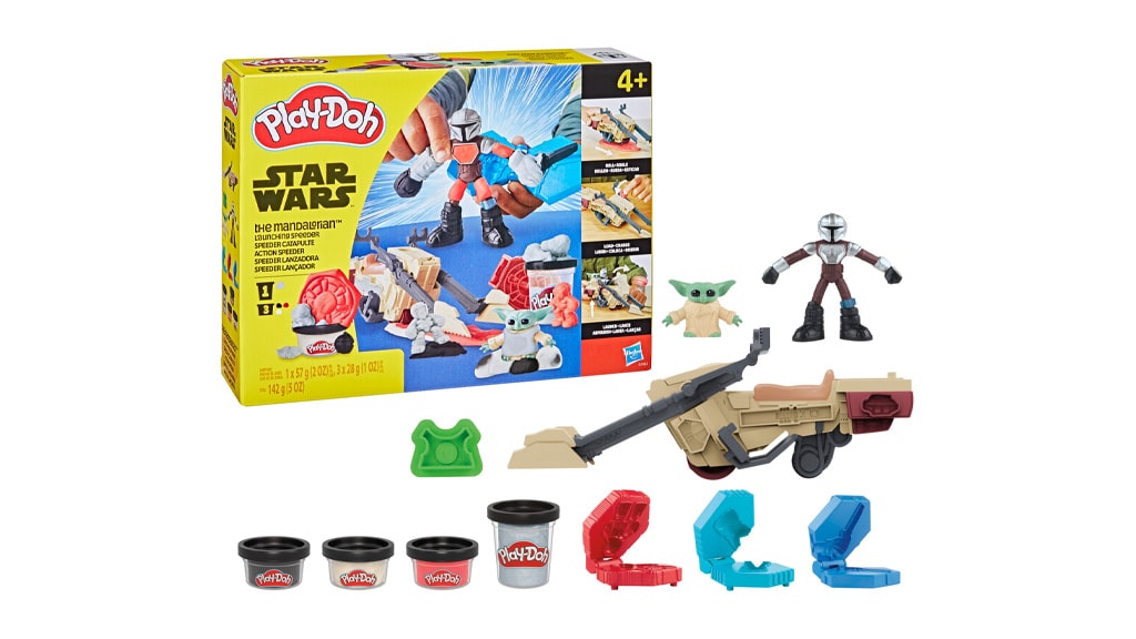 Deti môžu pomocou priloženého Speederu prevracať Play-Doh hmotu, aby vytvorili strelivo, potom ho môžu nabiť do Speederu a vystreliť (samozrejme pod vedením Mandaloriana a Grogu). Vozidlo zároveň slúži ako súprava nástrojov – deti ho môžu rozobrať a použiť diely na rezanie a tvarovanie Play-Doh hmoty. Súprava obsahuje aj formy na Mandalorianovu zbroj, Groguovu hrudnú dosku a ďalšiu postavu, aby bola imaginárna hra ešte vzrušujúcejšia!