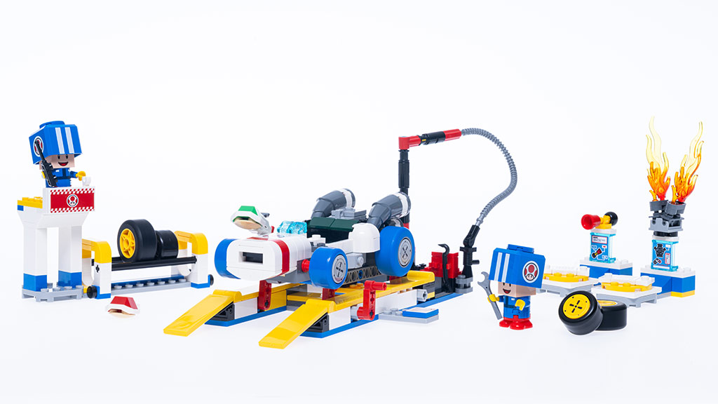 Deti môžu znovu vytvoriť hry Mario Kart v reálnom živote s LEGO Super Mario: Mario Kart Baby Mario vs. Baby Luigi setom, ktorý obsahuje 321 dielikov a Baby Maria a Baby Luigiho v ich motokárach, ako hrajú hru Balloon Battle. K dispozícii je aj LEGO Super Mario: Mario Kart Baby Peach & Grand Prix set, ktorý obsahuje 823 dielikov a Baby Peach, Toad a Lemmyho, ako prechádzajú cieľovou čiarou vo svojich motokárach.