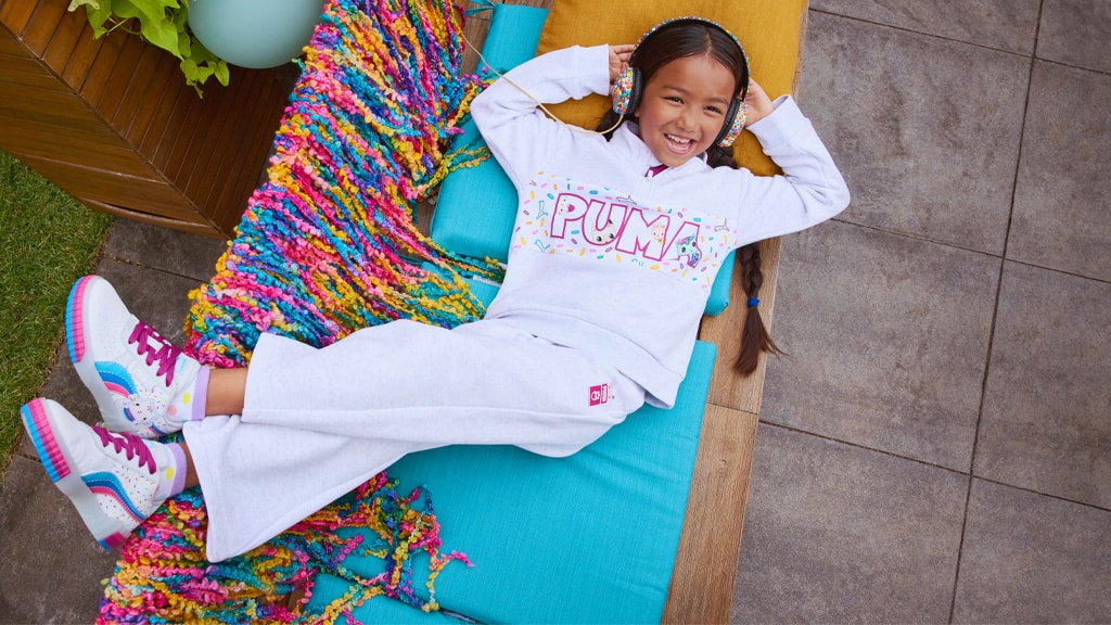 Pre deti, ktoré si nevedia vybrať obľúbenú postavu, PUMA sa o ne postará (v mäkkom, svetrovom materiáli). Jedna z PUMA x Gabi bábikových domčekov, dvojdielna súprava, obsahuje obrázky MerCat a jej priateľov a vzor pokrytý šupinami. Súprava obsahuje sukňu a legíny, ktoré predstavujú podobný šupinový vzor.