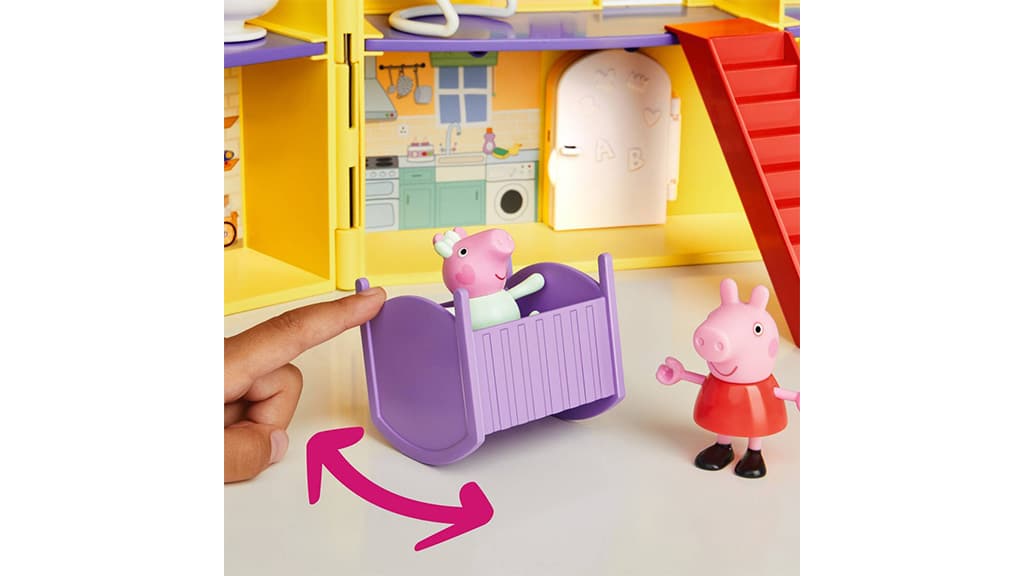 Deti si môžu vytvoriť a znovu prežiť svoje obľúbené príbehy Peppa Pig s celou rodinou, vrátane najnovšieho člena, Evie. Tento 16-dielny domček vyzerá presne ako v seriáli a obsahuje všetky dôležité miestnosti: kúpeľňu, obývačku, kuchyňu s otvárateľnou chladničkou a garáž s otvárateľnými dverami. Súprava obsahuje aj figúrky, takže deti môžu ešte realistickejšie zahrať scény z rozprávok. Táto hračka nielen rozvíja predstavivosť, ale aj spríjemňuje spoločné rodinné chvíle, pričom najmenší môžu objavovať svet Peppy a vytvárať si vlastné príbehy.