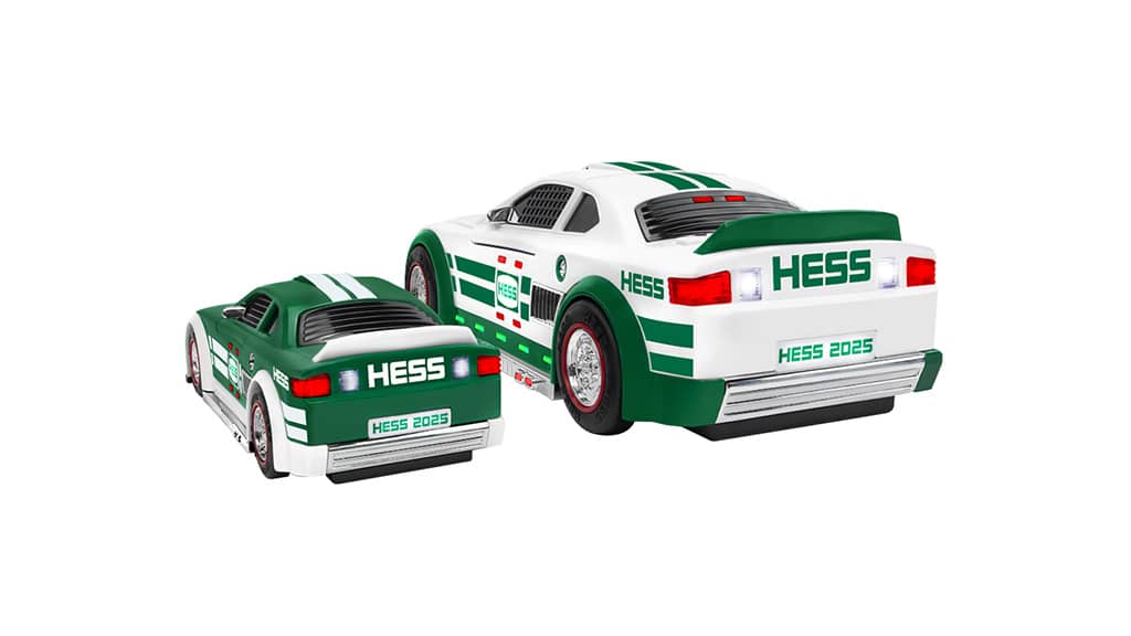 Väčšie, biele stock car svieti 42 jasnými LED svetlami a má realistické zvukové efekty, vrátane štartovania, klaksónu, odpočítavania, prechodu a zvuku hydraulického zdviháka, ktorý sa ozve, keď sa kapota otvorí. Pod kapotou čaká deti prekvapenie: menšie, zelené pretekárske auto, ktoré je vybavené 25 nepretržite svietiacimi svetlami a naťahovacím motorom, takže môžu usporiadať vzrušujúce preteky na podlahe. Spolu ponúkajú obe autá celkovo 67 svetiel, chrómované ozdoby, zatmavené okná a dynamický herný zážitok pre fanúšikov všetkých vekových kategórií. Tieto detaily robia hru ešte výnimočnejšou, pretože okrem svetiel a zvukov prispieva k zábave aj kvalitné spracovanie a realistický vzhľad, vďaka čomu si deti môžu užívať pretekanie a kreatívnu hru celé hodiny.Tohtoročný dizajn vzdáva hold bohatej tradícii značky Hess, pričom vďaka aerodynamickým tvarom a svetelným prvkom získava moderný vzhľad. Hračka, ktorá prichádza v zberateľskej, sviatočne ladenej krabici, je poháňaná šiestimi batériami Energizer, ktoré sú súčasťou balenia. Model Hess Stock Car Racers 2025 je dostupný výhradne na oficiálnej webovej stránke, kde je základné doručenie zdarma. Táto špeciálna edícia predstavuje vzrušujúcu novinku nielen pre zberateľov, ale aj pre milovníkov pretekárskych áut, pretože spája klasické hodnoty s najnovšími technologickými riešeniami a poskytuje zážitok všetkým vekovým kategóriám.