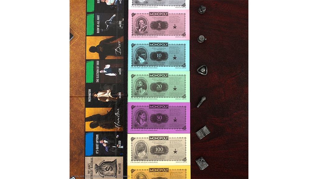 Mince a bankovky patriace k hre zobrazujú postavy ako Angelica Schuyler , Hercules Mulligan , Marquis de Lafayette a Alexander Hamilton . Táto špeciálna edícia ponúka vzrušujúci zážitok nielen fanúšikom muzikálu, ale aj milovníkom spoločenských hier, pretože klasickú hrateľnosť spája s jedinečnou historickou atmosférou.