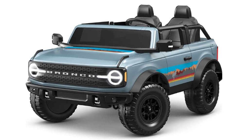 Flybar Kid Trax Bronco Mountain Escape umožňuje deťom zažiť skutočný zážitok z jazdy aj vo vlastných garážach. Toto akumulátorové autíčko s odnímateľnými dverami, LED osvetlením a zvukovými efektmi (klaksón a zvuk motora) robí hru ešte vzrušujúcejšou. Vozidlo má maximálnu rýchlosť 8 km/h, takže ponúka bezpečné, ale zároveň zábavné tempo. Je vybavené rýchlostnými stupňami pre jazdu vpred aj vzad a kolesami Power Trax s pogumovaným povrchom pre stabilnú jazdu v akomkoľvek teréne. Deti si počas jazdy môžu vypočuť aj svoje obľúbené pesničky, vďaka čomu je hra ešte zábavnejšia. Toto vozidlo je ideálnou voľbou pre dobrodružné deti, ktoré chcú objavovať okolie a zažiť radosť z jazdy.
