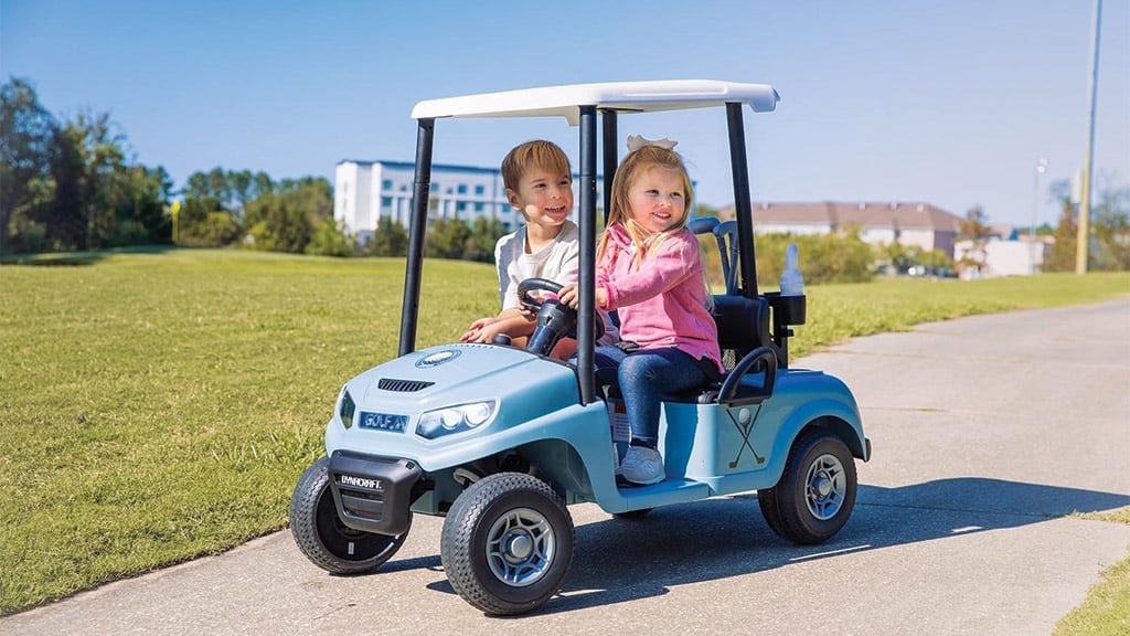 Toto vozidlo je dokonalou voľbou na letnú zábavu. Môžu ho naraz používať aj dve deti a môžu s ním jazdiť rýchlosťou až 8 km/h, keďže je vyrobené v štýle golfového vozíka. Balenie obsahuje golfové palice, loptičky, rolovateľný koberec a vlajku s jamkou, takže deti môžu zažiť skutočný golfový zážitok. Táto hračka nie je len zábavná, ale rozvíja aj pohybovú koordináciu a tímovú prácu, zatiaľ čo deti trávia čas vonku.