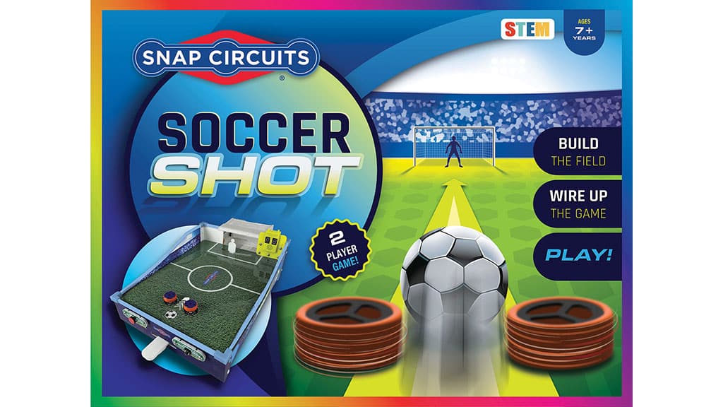 Snap Circuits Soccer Shot je vzrušujúca dvojhráčová výzva, ktorá premieňa futbalové penalty na zábavu. Deti najprv postavia hru a potom sa pustia do akcie: jeden hráč kope, zatiaľ čo druhý bráni ako brankár. Prvý, kto strelí deväť gólov, vyhráva. Táto hra nielenže zabáva, ale aj rozvíja zručnosť a strategické myslenie detí, pričom posilňuje ich lásku k športu.