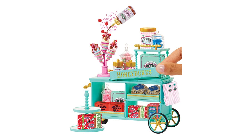Tvoje obľúbené fantasy dezerty môžu byť mini veľkosti, ale stále sú rovnako sladké ako kedykoľvek predtým. Rodiny môžu zažiť zázrak cukrární Čarodejníckeho sveta, pretože tajomné kapsuly obsahujú všetko potrebné na znovuvytvorenie nezabudnuteľných pochúťok z franšízy Harryho Pottera. Každá kapsula obsahuje obľúbené dezerty fanúšikov, ako sú "Explodujúce bonbóny, Bertie Bottove fazuľky všetkých chutí a Čokoládové žabky."Zberatelia si môžu vziať svoje sladkosti na mini dobrodružstvá s pomocou Make It Mini Harry Potter Honeydukes Trolley. Táto magická súprava obsahuje všetky súčiastky na postavenie vozíka, ako aj exkluzívne mini repliky jedál a doplnky s cukríkovou tematikou, ako sú fľaše, tácky, krabice na cupcakes a mnoho ďalších.
