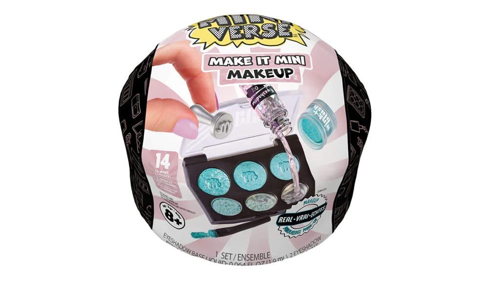 MGA Miniverse Make It Mini Makeup je očarujúca kreatívna súprava, ktorú si deti od 8 rokov môžu postaviť. Deti si môžu vytvoriť, vystaviť a používať svoje vlastné malé make-upy. Každé balenie je prekvapením: malí make-up umelci nevedia, ktorý kozmetický produkt dostanú, kým neotvoria balenie. Medzi možnosťami sú olej na pery, rúž, očné tiene a lak na nechty, ktoré sú všetky plne funkčné na aplikáciu make-upu. Balenia sa tiež premenia na malý toaletný stolík, aby mohli vystaviť make-up.