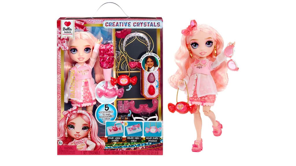 Kolekcia MGA Rainbow High Creative Crystal Bábik oslavuje tvorivosť, kreativitu a módu v klasickej podobe bábiky. Každá bábika prichádza s nástrojmi, ktoré umožňujú deťom rýchlo a vzrušujúco vytvárať roztomilé a farebné doplnky pre ich nového módneho priateľa. Pomocou priloženej živice a foriem môžu deti pridávať ozdoby k už zábavnému a jedinečnému vzhľadu bábik s vlastnoručne vyrobenými živicovými kúskami. Aj keď práve nie je čas na tvorenie (alebo po dokončení živicových doplnkov), tieto bábiky zostávajú zábavné. S ohybnými končatinami a kombinovateľnými vlasmi poskytujú hodiny zábavy a radostných zážitkov. S kolekciou piatich bábik si deti môžu vybrať svoju obľúbenú alebo dúfať, že ich zozbierajú všetky.