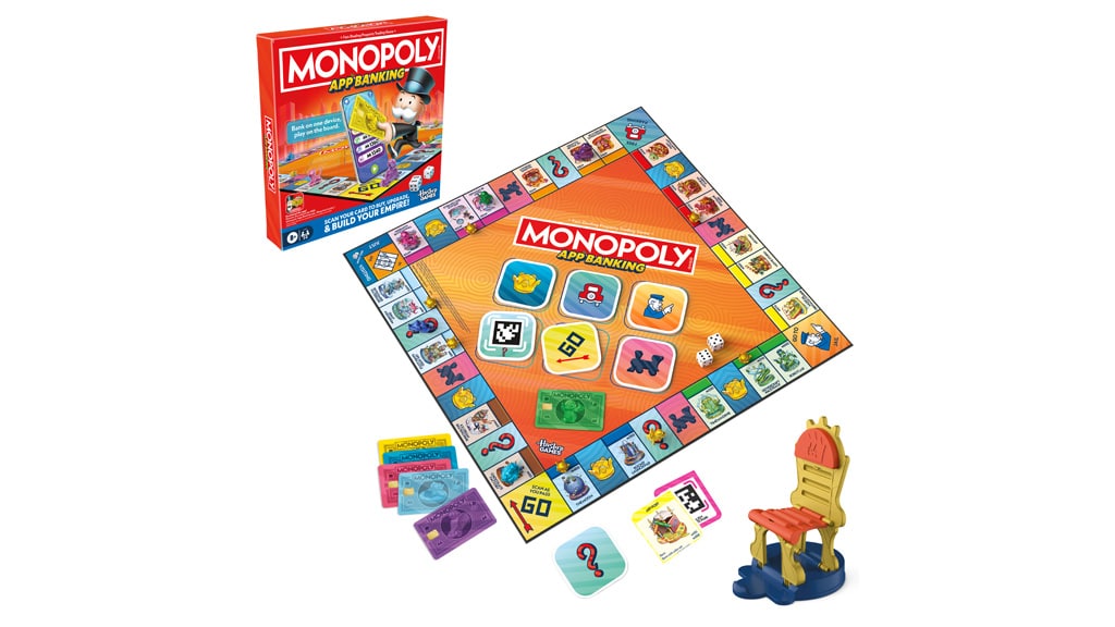 Spoločenská hra Hasbro Monopoly App Banking kombinuje dobre známy herný princíp klasickej spoločenskej hry s modernou, aplikáciou podporovanou technológiou. Hráči fyzicky pohybujú figúrkami po hracej ploche a zbierajú karty, rovnako ako v tradičnej verzii, avšak nákup nehnuteľností a pohyb peňazí už prebieha v bezplatnej aplikácii Monopoly App Banking. Deti jednoducho naskenujú listy vlastníctva a iné akčné karty, potom cez aplikáciu dražia, nakupujú a vyberajú nájomné. Namiesto hotovosti si každý vyberie bankovú kartu, prostredníctvom ktorej môže sledovať pohyb svojich peňazí. Táto moderná verzia nielenže robí hru vzrušujúcejšou a rýchlejšou, ale pomáha deťom zoznámiť sa so základmi digitálneho spravovania peňazí, pričom zážitok z rodinnej zábavy zostáva zachovaný.