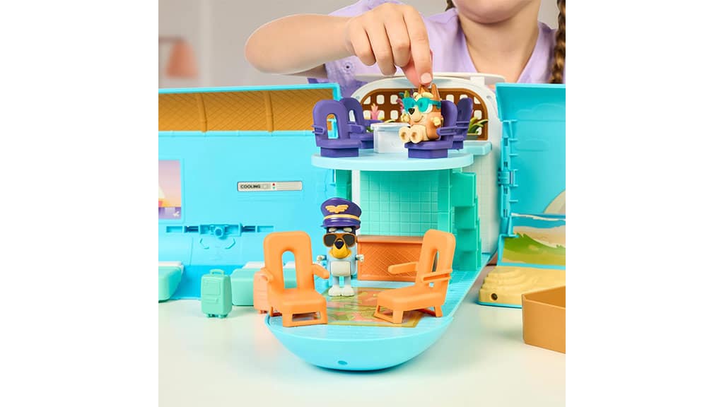 Toto lietadlo sa mení na hotel a rýchlu loď. Obsahuje viac ako 25 zvukov a výrazov a prichádza so špeciálnymi figúrkami Bluey a Bingo, batožinou a mnohými ďalšími. Toto špeciálne vozidlo poskytuje vzrušujúci zážitok nielen pre deti, ale aj pre dospelých, pretože rozvíja kreativitu a predstavivosť. Ideálna voľba pre rodinné výlety alebo domáce hry, kde dobrodružstvá nikdy nekončia.