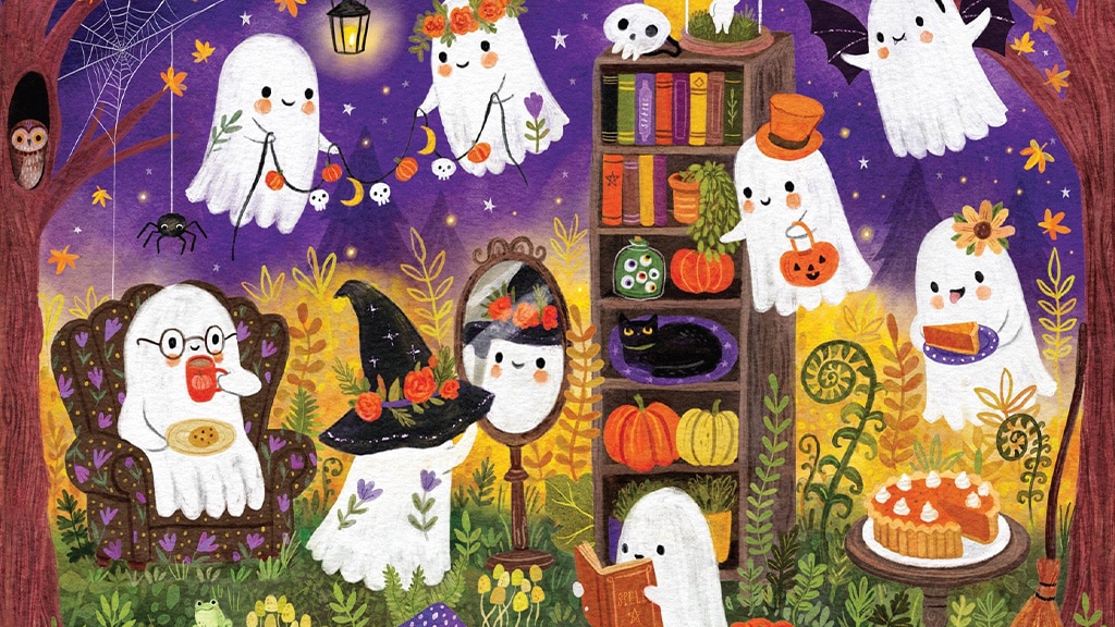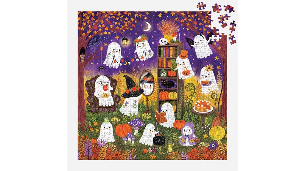Každý sa môže zapojiť do zábavy, ak si zostaví toto desivo rozkošné puzzle. Rodinné puzzle Ghostly Gathering s 500 dielikmi zobrazuje scénu, kde priateľskí duchovia trávia spolu čas a v strašidelne dobrej nálade oslavujú noc Halloween. Toto puzzle je perfektnou voľbou pre celú rodinu, pretože poskytuje zábavný a zbližujúci zážitok, zatiaľ čo všetci spolupracujú na zostavení obrázka. Farebná a veselá scéna prináša radostné chvíle malým aj veľkým a je skvelou príležitosťou na spoločnú hru a rozhovor.Toto sú jediné detsky priateľské strašidlá na trhu. Tie rodiny, ktoré hľadajú ďalšie halloweenske programy, môžu nájsť aj vzrušujúce hry a veselé hádanky. Spoločné hranie a kreatívne úlohy ponúkajú skvelú príležitosť, aby rodina trávila čas spolu, zatiaľ čo deti sa môžu bezpečným a zábavným spôsobom zoznámiť s atmosférou Halloweenu. Objavte rôzne spoločenské hry, puzzle a nápady na tvorenie, s ktorými môžete toto sviatky urobiť ešte nezabudnuteľnejšími!