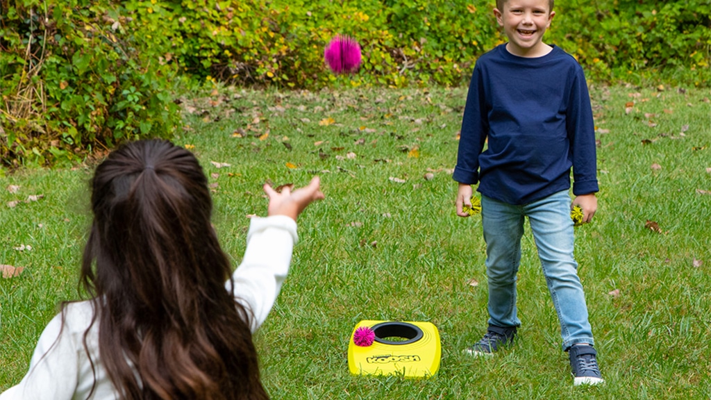 Keďže deti teraz už hádžu mäkké Koosh loptičky namiesto vrecúšok, hru Koosh Kornhole môžu hrať aj vo vnútri, aj vonku. To umožňuje, že sa nemusia vzdať hry ani v zlom počasí a môžu sa bezpečne zabávať aj v byte. Mäkké loptičky nespôsobujú zranenia a neohrozujú nábytok, takže aj rodičia môžu byť pokojnejší. Hra rozvíja zručnosť, koordináciu a tímovú prácu, pričom sa deti výborne zabávajú.Koosh Kornhole prichádza so šiestimi neónovými Koosh loptičkami a jednou hernou doskou, ku ktorej patria dva podperné nohy, aby sa dala stabilne postaviť. Táto hra je ideálnou voľbou na rodinné alebo priateľské stretnutia, pretože vďaka jednoduchým pravidlám a žiarivým farbám je zábavná pre všetky vekové kategórie. Odolná herná doska sa ľahko skladá a mäkké Koosh loptičky sú bezpečné na hranie v interiéri aj exteriéri. Koosh Kornhole rozvíja zručnosť, koordináciu a tímovú prácu, pričom hráčom prináša veselé chvíle.