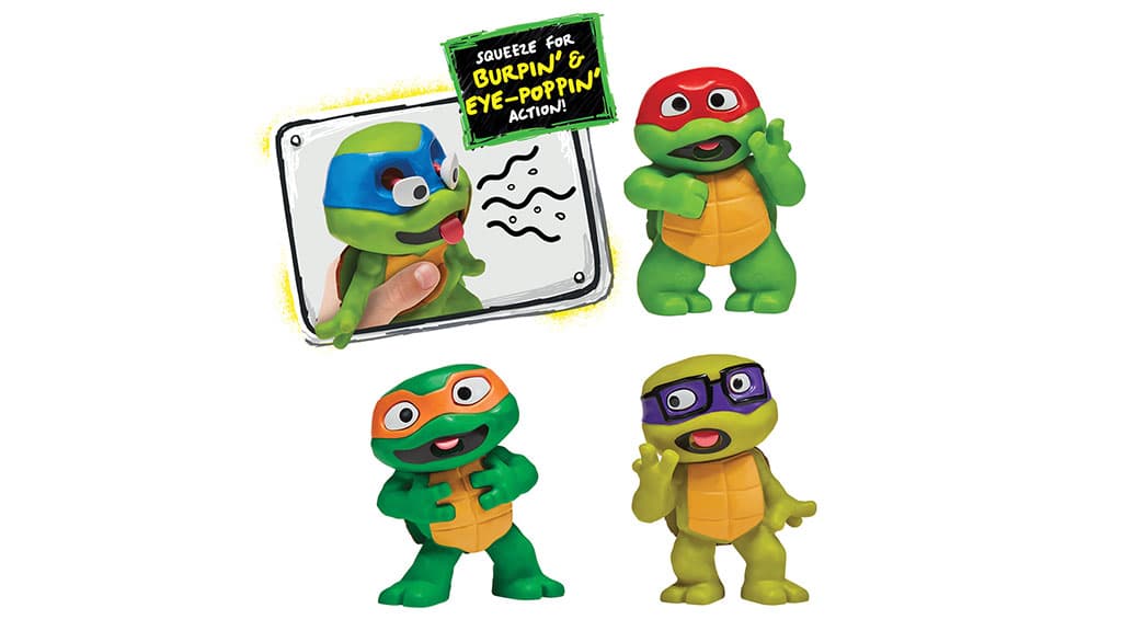 Deti môžu stlačiť bruško, aby videli vypúlené oči a vyplazený jazyk, čo poskytuje naozaj vtipný a pôsobivý zážitok. Táto hračka nie je len zábavná, ale rozvíja aj jemnú motoriku a zručnosť rúk. Špeciálny pohyb zakaždým vyvoláva smiech a radosť u detí, pričom ich zároveň podnecuje ku kreatívnej hre.Toto je štíhly, zelený, grgajúci tím nindžov! Tieto zberateľské figúrky sú ideálne pre fanúšikov TMNT, ktorí majú radi vtipné, zábavné akcie. Keď deti stlačia bruško korytnačiek, môžu vidieť, ako ich obľúbeným hrdinom vyvalia oči a jazyk im vystrčí von. Každá figúrka je približne 14 cm vysoká, takže je ideálnym spoločníkom na hranie aj na cestách. Ak si deti radšej nechajú svojich polopancierovaných hrdinov doma, tieto zberateľské hračky skvele vyzerajú aj na poličke, pretože samostatne stoja. Rodičom sa môže páčiť, že tieto cenovo dostupné hračky ponúkajú zábavný zážitok z grgania, ale bez nepríjemných pachov. Tieto figúrky nie sú len zábavné, ale podnecujú aj kreatívnu hru a môžu byť skvelým darčekom na každú príležitosť.