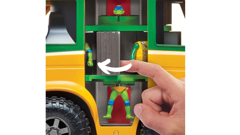 Tento herný set od Playmates Toys sa skladá z dodávky na rozvoz pizze Ninja korytnačiek a akčných figúrok tímu Ninja korytnačiek! Deti môžu posadiť akčné figúrky do Mutagénnej stanice v dodávke a podľa ľubovôle ich miešať a kombinovať. Potom môžu odklopiť strechu dodávky, aby skombinovaním troch rôznych častí vytvorili úplne novú akčnú figúrku, ktorá je kombináciou troch rôznych postáv Ninja korytnačiek!