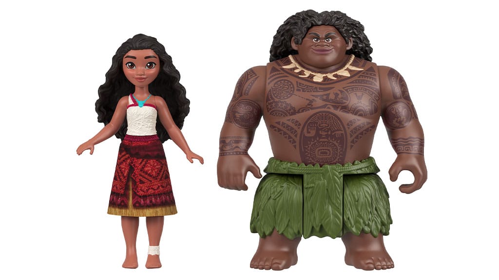 Táto súprava obsahuje bábiky Vaiana a Simea, ako aj Heihei a dva doplnky, ktoré pomáhajú zahrať si neotrasiteľné puto medzi sebou a ich krajinou, ostrovom Motunui.Táto skupina piatich malých bábik — Vaiana, Moni, Loto, Kele a Kotu — je pripravená na dobrodružstvo. Obsahujú tri doplnky pre nekonečnú hru. Tieto bábiky majú základné pohyby; neexistuje cesta, ktorá by pre nich bola príliš veľká! Okrem toho sú oblečenia bábik detailne prepracované a každá z nich predstavuje jedinečný štýl, čo robí hru ešte vzrušujúcejšou.