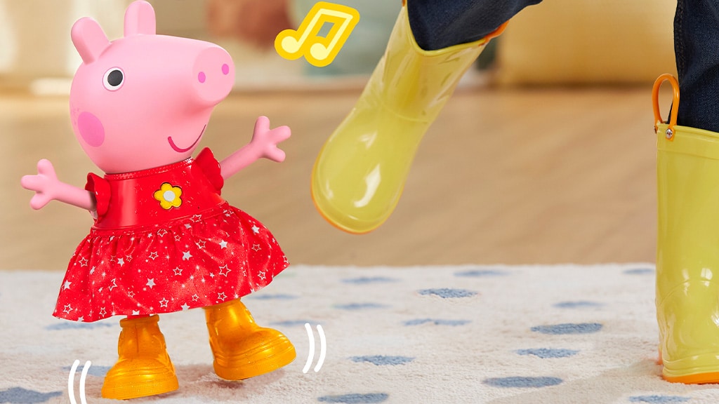 Tento interaktívny Peppa Pig od Hasbro povzbudzuje deti, aby sa hrali spolu a užívali si tanečné párty, hry a mnoho ďalšieho. S viac ako 55 zvukmi, výrazmi a reakciami môžu deti individuálne komunikovať s Peppou.