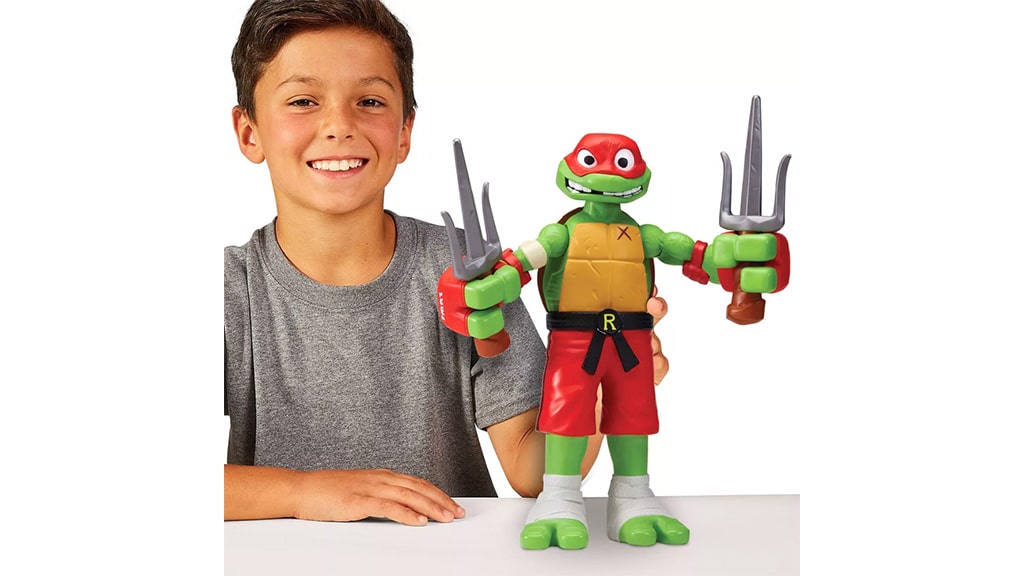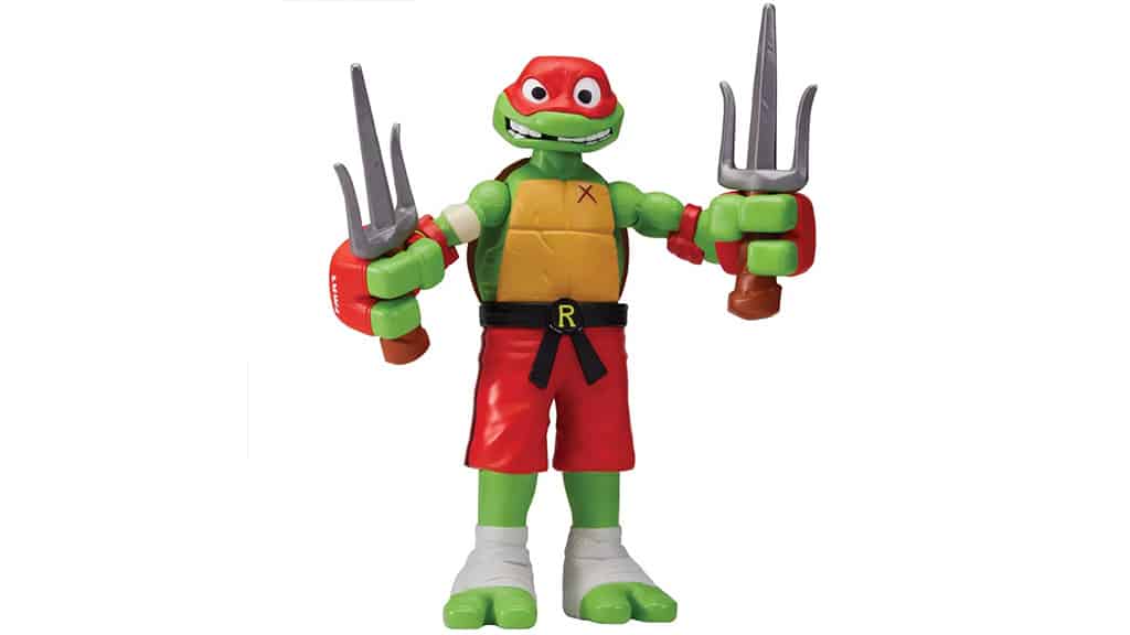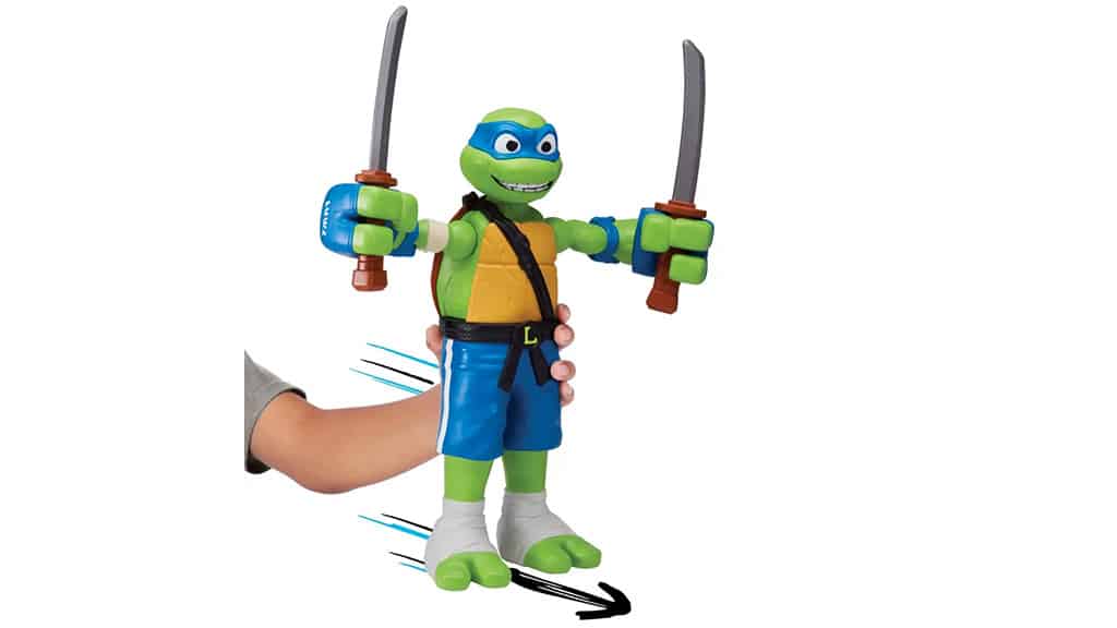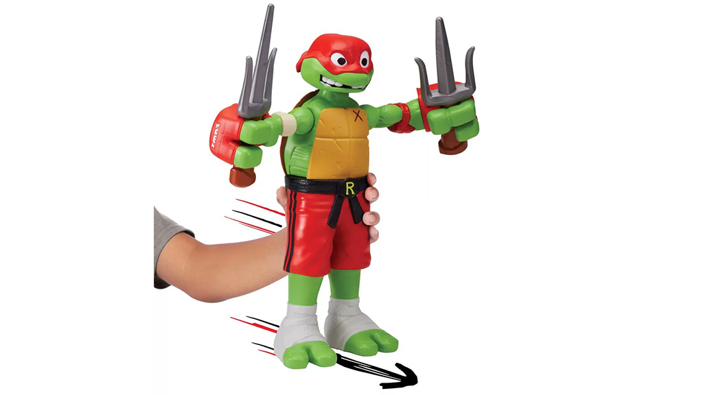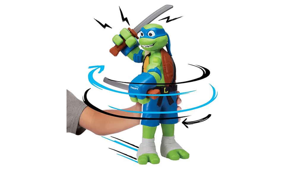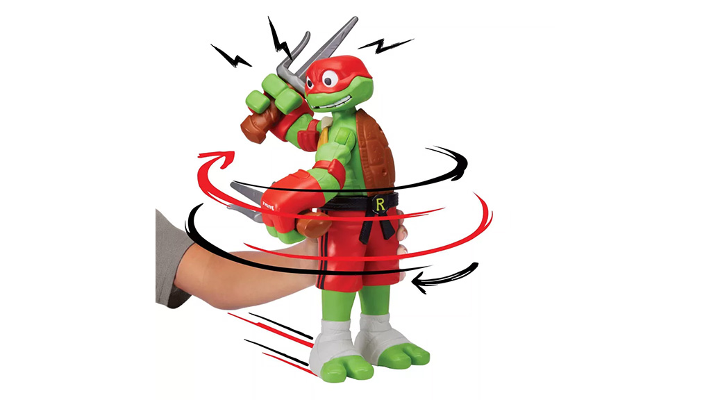 Toto je veľká akčná figúrka Príbehy o Ninja korytnačkách, ktorá sa otáča o 360 stupňov, keď sa valí po rovnom povrchu, vďaka kolesám na spodnej časti hračky. Tieto postavy majú veľké, pohyblivé ramená, ktoré sa ľahko ohýbajú a krútia.