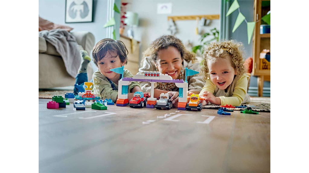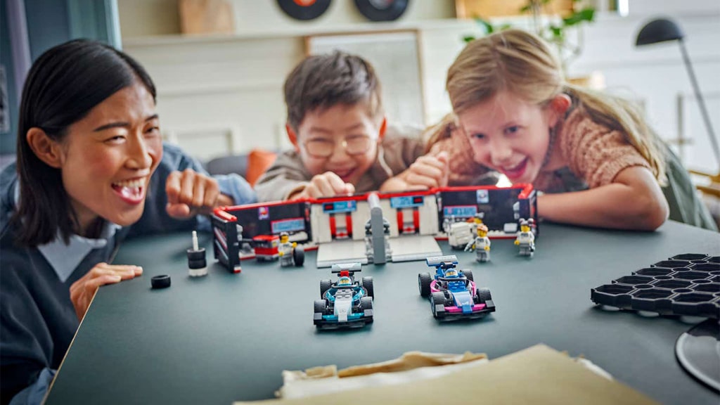 Rodiny si môžu doma postaviť vlastnú Grand Prix s LEGO DUPLO Town F1 Team Závodnými autami a Pilotmi. Sada obsahuje štartovú čiaru, pódium, dve autá a dvoch pilotov, ako aj ďalšie prvky na úpravu závodnej dráhy a závodných áut. Táto sada poskytuje zábavné a kreatívne trávenie času nielen pre deti, ale aj pre celú rodinu, pretože každý sa môže zapojiť do navrhovania závodnej dráhy a prispôsobovania áut. Počas spoločného stavania a hrania môžu členovia rodiny spolupracovať, rozvíjať svoju kreativitu a schopnosti riešiť problémy, zatiaľ čo si užívajú spoločný čas.Séria "LEGO City F1" — ktorá pozostáva zo šiestich súprav — zahŕňa prepravu vozidiel, tímovú garáž, začiatok pretekov, zastávky v boxoch a mnoho ďalšieho, čo umožňuje aj "väčším deťom" zažiť vzrušenie z Grand Prix. LEGO stavby majú detailné spracovanie, ktoré poskytuje flexibilnú zábavu.