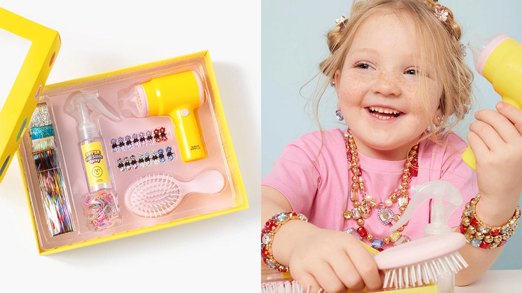 Môžete sa rozlúčiť so zlými vlasovými dňami! S pomocou Hajdivat hernej sady bude česanie, sušenie vlasov a zdobenie vlasov detskou hrou. Táto sada obsahuje jemný rozčesávací hrebeň a svietiaci sušič vlasov, s ktorými ľahko skrotíte neposlušné pramene detí. Praktická rozprašovacia fľaša umožňuje rýchle úpravy aj na cestách. V balení nájdete mini gumičky do vlasov, trblietavé sponky s kvetmi a vkladacie trblietavé pramene, vďaka ktorým môžu deti premeniť každý svoj účes na skutočne žiarivý. Táto súprava nielenže robí každodennú starostlivosť o vlasy zábavnou, ale tiež podporuje kreatívnu hru, takže deti môžu smelo experimentovať s rôznymi štýlmi a ozdobami.