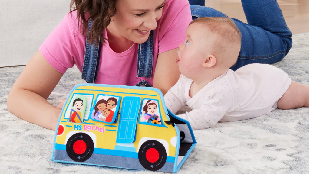 Osem zvieracích a farmárskych prostredí čaká na deti, aby ich objavili. Deti si môžu rozvíjať svoje "jemné motorické zručnosti", zdvíhať kukucie-krinkli klapky, hrať sa so stužkami, pozerať sa do zrkadla a používať pripojené hryzátko. Učiaca farma obsahuje rôzne "textúry" a "čísla".Deti si môžu užívať čas strávený na bruchu, zatiaľ čo pohybujú chlapcom hore-dole, trúbia, šuchotajú stieracími pásikmi a zdvíhajú kryt, aby videli, ako rodičia bozkávajú svoje bábätko. Aktivita autobus je mäkký, má rôzne textúry pre senzorickú hru, obsahuje ilustrovaný obrázok pani Rachel, zrkadlo a vysokokontrastné čierno-biele grafiky.