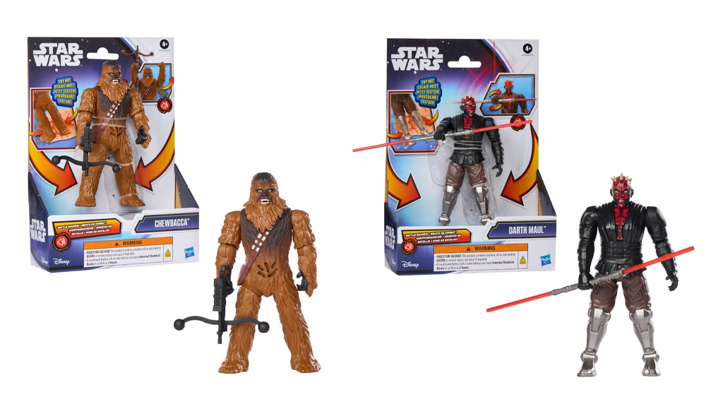 Darth Maul a Chewbacca sa tiež pripájajú ku kolekcii Hasbro Star Wars Action FX. 15-centimetrová figúrka Darth Maul prichádza s otáčajúcim sa svetelným mečom, ktorý je pripevnený k hračke, a má viacero pohyblivých kĺbov. Deti môžu stlačiť nohy figúrky, aby vyvolali rôzne pohyby a zvuky, čím sa zážitok z hry stáva ešte vzrušujúcejším.