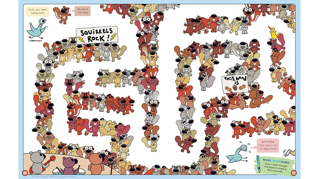 Kniha ponúka deťom viac ako 100 vzrušujúcich aktivít, medzi ktorými sa nachádza napríklad učenie sa kresliť, navigácia v veveričom bludisku, riešenie hádaniek a vyfarbovanie stránok v štýle komiksu. Každá stránka povzbudzuje deti, aby sa vyjadrovali novými spôsobmi, napríklad písaním, varením, tancom alebo tvorbou vlastného umenia. Kniha obsahuje 50 nálepiek a aj vyberateľný plagát, ktorý si deti môžu vyfarbiť a zavesiť do svojej izby. Farebná škála obojstranných fixiek Crayola v balení zodpovedá palete, ktorú Willems používa pre svoje postavy. Táto kniha nie je len zábavná, ale rozvíja aj kreativitu, sebavyjadrenie a schopnosť riešiť problémy, pričom deti zabaví na dlhé hodiny.