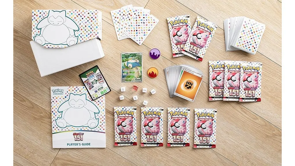 Otvorenie Scarlet & Violet — 151 Elite Trainer Box môže byť trochu náročné, len kvôli množstvu pokladov, ktoré obsahuje. Jednoducho povedané, v krabici nájdete 11 Pokémon TCG: Scarlet & Violet — 151 rozširujúcich balíčkov, 65 ochranných fólií na karty, 45 Pokémon TCG Energy kariet, šesť kociek na počítanie poškodení, dva plastové žetóny stavov, jednu fóliovanú promo kartu Snorlax s logom Pokémon Center, ďalšiu fóliovanú promo kartu Snorlax, jednu kocku na hod mincou použiteľnú na turnajoch, sprievodcu pre hráčov k rozšíreniu Scarlet & Violet — 151, kódovú kartu pre Pokémon Trading Card Game Live a box na uskladnenie toho všetkého.