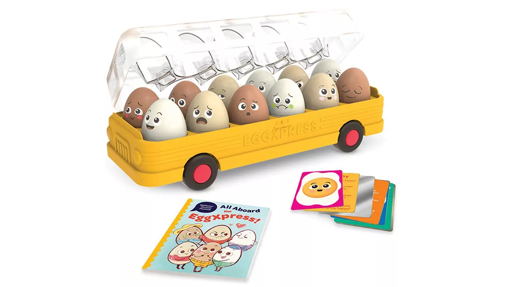 Deti si môžu precvičovať párovacie zručnosti, sociálno-emocionálnu inteligenciu a oveľa viac s týmito 12 kývajúcimi sa vajíčkami, ktoré majú vo vnútri tvary a farby, zvonka však výrazy tváre. Súprava obsahuje zrkadlovú kartu, rozprávkovú knihu a ešte viac.
