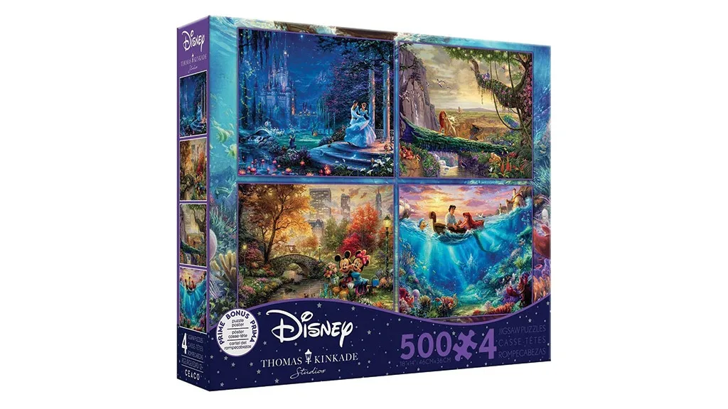 Čo môže byť lepšie ako jedna hlavolam? Štyri v jednom! Táto sada obsahuje štyri, 500-dielne Disney puzzle, ktoré sú inšpirované Popoluškou, Levím kráľom, Mickeym a Minnie, ako aj Malou morskou vílou.