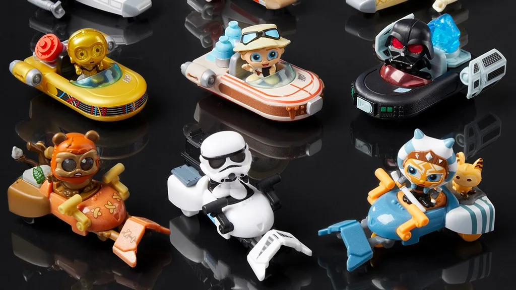 Natankuj a priprav sa na splnenie Kessel Run za menej ako 12 parsekov s Star Wars Doorables Galactic Cruisers. Deti môžu otvoriť balenie, aby objavili jednu z 10 rôznych minifigúrok, každú s vlastným, skutočne sa točiacim vozidlom. Môžu sa stretnúť s Darth Vaderom, R2-D2, Wicketom, Princeznou Leiou, stormtrooperom, C-3PO, Grogom, Luke Skywalkerom, Ahsoka Tano a špeciálnou edíciou chlpatého Chewbaccu, ktorí všetci pretekajú na predstavovaných speeder bikoch, landspeederoch a hviezdnych bojovníkoch. Deti nielenže môžu vystavovať svoje postavičky a vytvárať prekážkové dráhy, ale môžu si aj vymieňať postavy a vozidlá.
