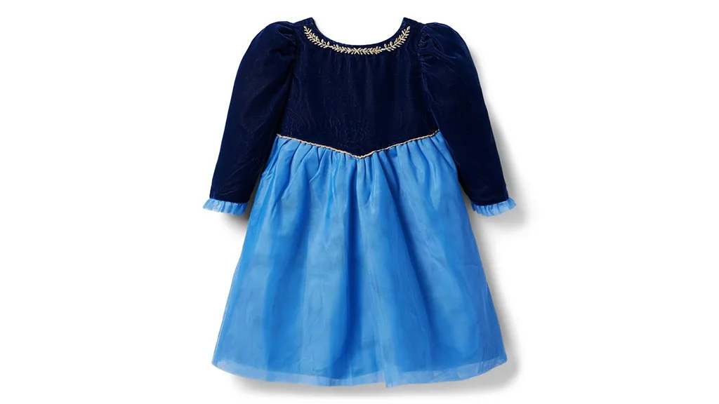 Toto šaty sú inšpirované Annou z Disneyho Mrazivej kráľovnej, s vyšívanými detailmi, nafúknutými rukávmi a manžetami z tylu. Šaty sú prateľné v práčke, úplne sú podšité a majú gombíkový chrbát.