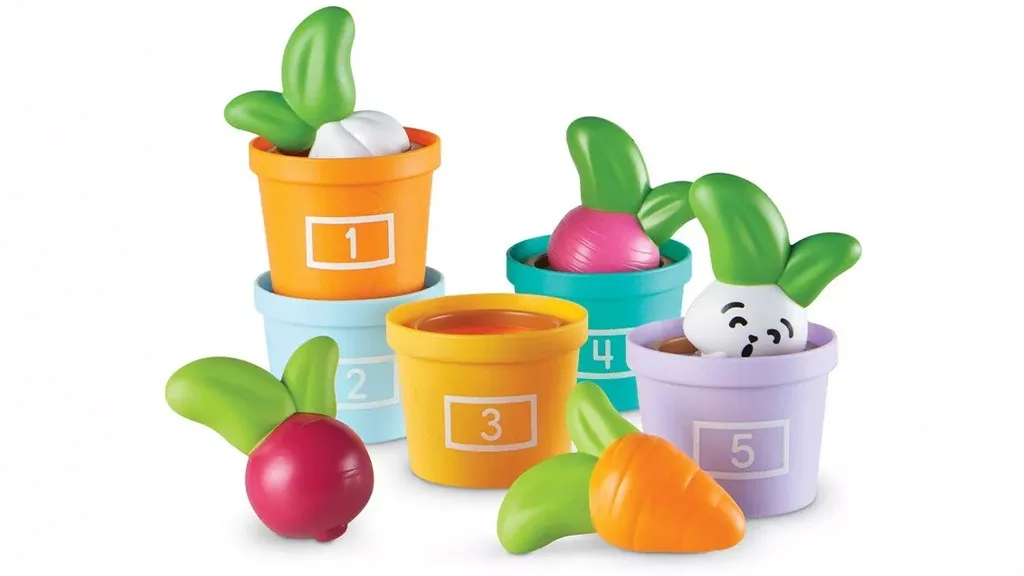 Táto sada pomáha pri výpočtoch, pamäti a rozvoji jemnej motoriky. Herná sada ponúka množstvo kreatívnych možností hry, takže sa skutočne oplatí za cenu. Je vyrobená z odolného, recyklovaného plastu a podporuje environmentálnu výchovu. Pribalený zošit obsahuje detské informácie o udržateľnosti, takže opatrovatelia môžu svojim deťom vysvetliť o zajacoch, mrkvách a záhradkárčení. Mini zelenina je dobre navrhnutá a vyniká medzi bežne dostupnými plastovými potravinami v kuchynských sadách.