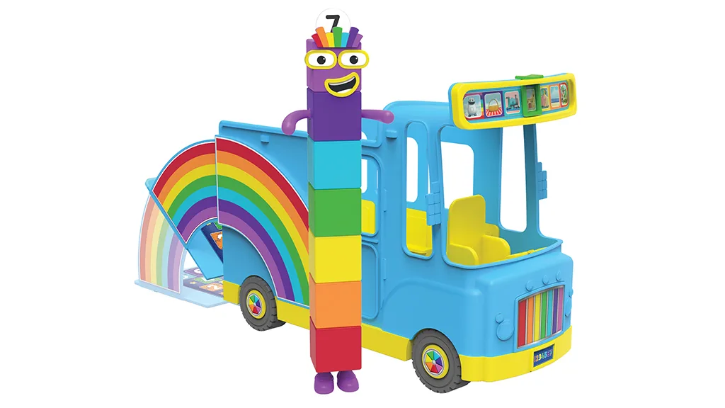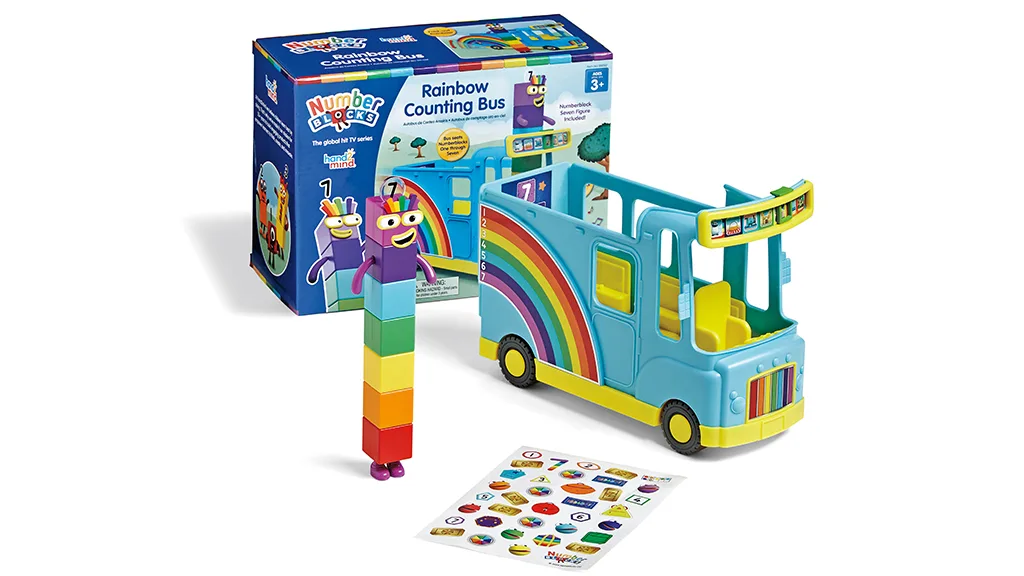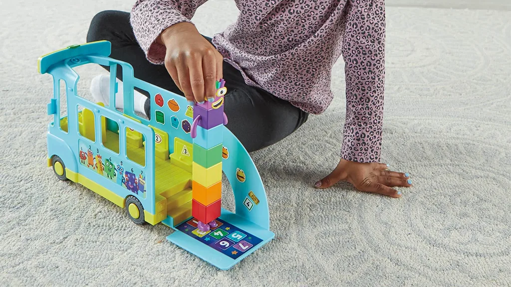 Autobus je plný interaktívnych hier: Na valivých kolesách sa otvára zadná časť, aby vytvorila dúhu a odhalila tabuľu pre skákaciu školu pre deti na počítanie. Je tam dosť miesta, aby si deti mohli vziať so sebou akúkoľvek ďalšiu figúrku Numberblocks, ako aj akúkoľvek akčnú figúrku, ktorú by chceli, aby sa pridala k zábave.