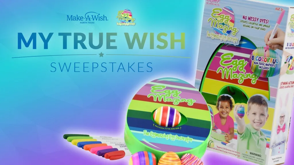 Spoločne s Make-A-Wish North Texas je Hey Buddy Hey Pal — a jeho rodina produktov EggMazing Egg Decorator — pripravený splniť ľudské želania s novou súťažou. Súťaž My True Wish trvá od 15. februára do 25. marca, počas ktorej sa ponúka 10 000 dolárov, aby sa splnilo želanie šťastného víťaza.