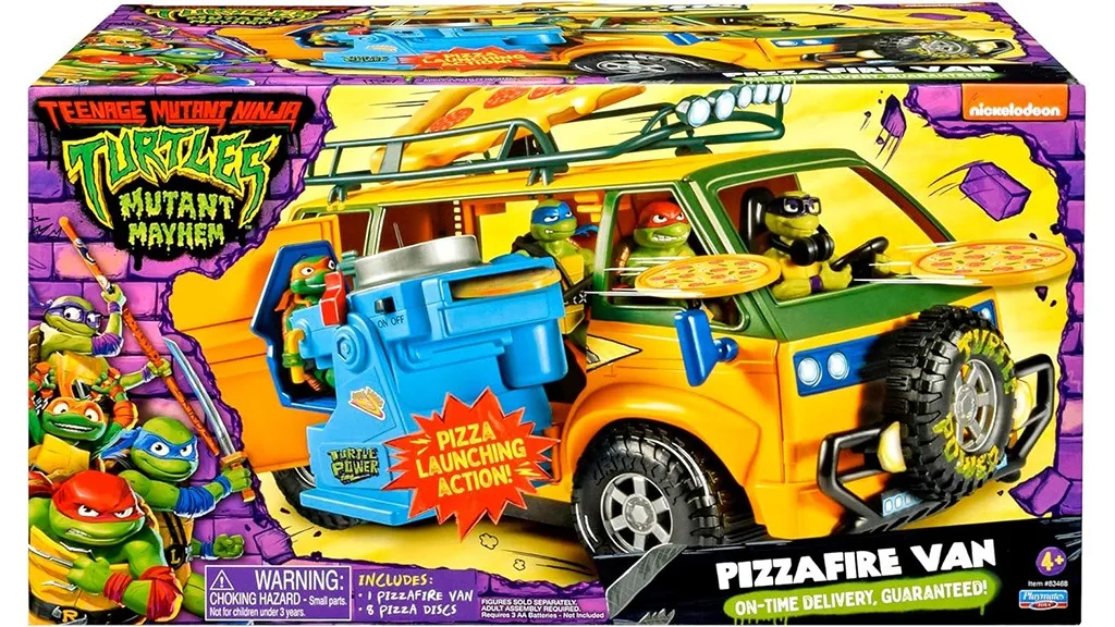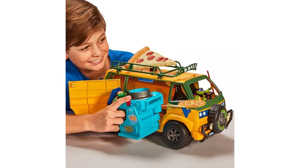 Odporúčané pre deti od 4 rokov a staršie, Pizza Požiarny Dodávkový Van je tajnou zbraňou korytnačiek v boji proti Superfly a jeho zlodejskej armáde. Van je navrhnutý presne tak, ako ho vidíme vo filme, od zelenej a žltej farby až po ručne kreslený obrázok pizze na jeho boku. Keď prvýkrát otvoríte balenie, niekoľko voľných dielov bude potrebné zmontovať, takže dohľad dospelých môže byť užitočný pre mladšie deti. Mechanizmus na vystreľovanie pizze navyše vyžaduje tri AA batérie (nie sú súčasťou), takže dospelí môžu pomôcť ich vložiť pred hraním.