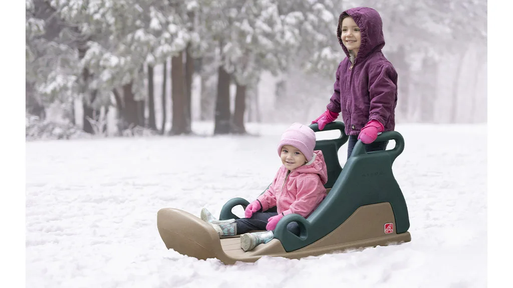 Táto sánka je vybavená formovaným sedadlom a zabudovanými rukoväťami, do ktorých sa môžu deti chytiť pre stabilitu, zatiaľ čo dospelí môžu tlačiť širokú, ľahko uchopiteľnú rukoväť. Na spodnej strane sánok sú drážky, ktoré ľahko prejdú cez akékoľvek množstvo snehu, či už je to niekoľko palcov alebo len závan.